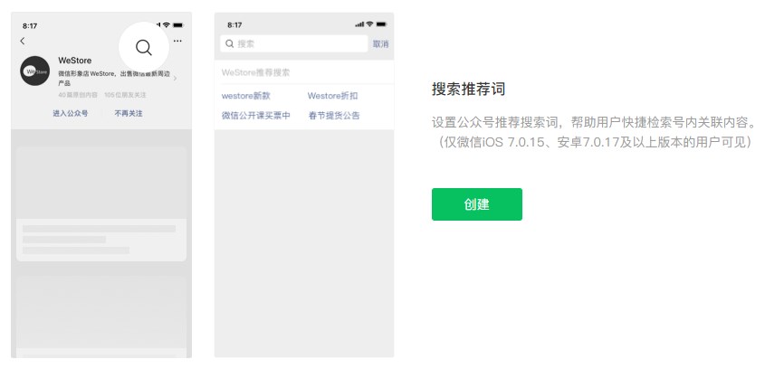 近日,微信公眾號(hào)新增號(hào)內(nèi)搜索功能。公眾號(hào)主可以自定義設(shè)置推薦搜索關(guān)鍵詞,從而增加文章曝光。